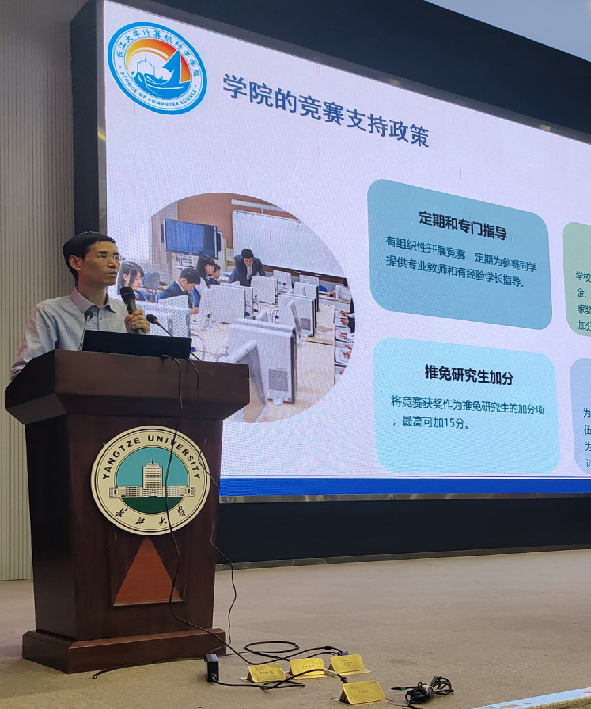 副院长陈中举围绕学科竞赛政策展开专题解读,从学科竞赛分类、报名渠道筛选到奖励机制细则,逐一进行清晰说明,鼓励新生以竞赛为契机,锤炼专业技能、提升综合素养。