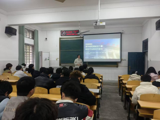 于12月以团支部为单位开展主题团会活动。本月示范团支部计科32502班召开"深学细悟凝奋进力量,崇宪守法担时代使命"主题团会,由团支部副书记张德梅主讲,全班同学参加。