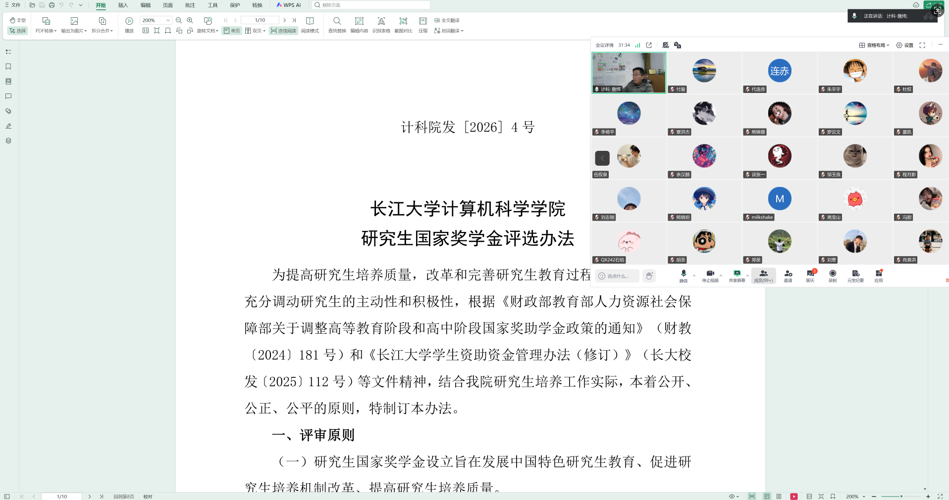 第二阶段,詹炜副院长重点解读了奖学金评审的相关政策,详细介绍了学业奖学金与国家奖学金的评定条件、申请流程、材料准备及评审时间安排,并对同学们普遍关心的科研成果认定、综合成绩计算等具体问题作出说明,帮助大家提前规划、充分准备。