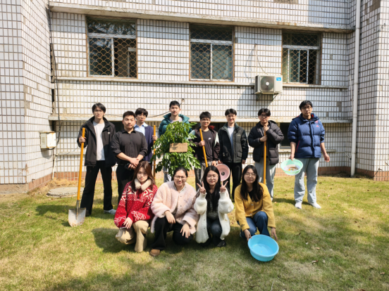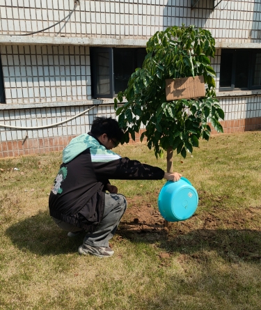 活动现场,大家热情高涨,干劲十足。同学们分工协作,扶苗、培土、踩实、浇水,每一个环节都一丝不苟。虽然双手沾满了泥土,额头上渗出了汗水,但看着挺立在春风中的小树苗,每个人的脸上都洋溢着喜悦的笑容。这棵新栽种的幸福树,不仅承载着班长们的集体心愿,更象征着计科学子如同这树苗一般,在知识的土壤中向下扎根、向上生长,追寻属于自己的幸福人生。