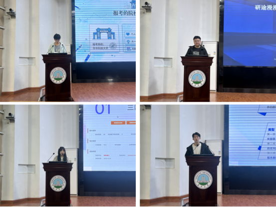 大会伊始,四位优秀学生代表分享发展经验:考研高分考取华中科技大学的刘瑞红、本校研究生连涛、考入四川税务局的陈慧琳、湖北省选调生蔡思耀,分别从考研、考公、选调生方向,分享了备考方法、流程要点与心态技巧,为同学们提供实用指引。