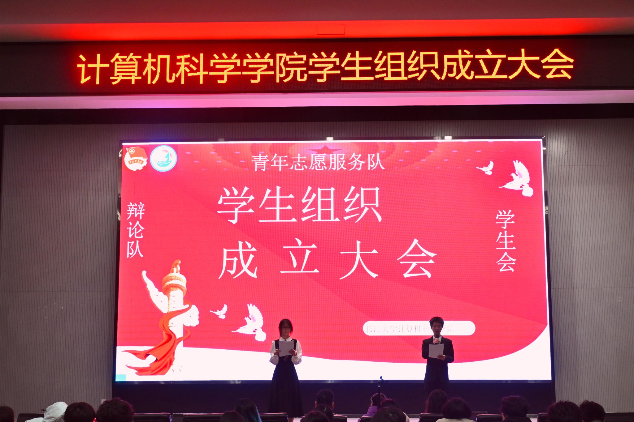 此次2025届学生组织成立大会,既是一次组织的正式集结,更是一次青春力量的凝聚与精神的传承。展望未来,计科院学生组织将携手并肩、奋勇前行,在青春的赛道上追逐梦想、书写华章。其中,学生会争做服务师生的排头兵,青支队勇当志愿奉献的先行者,辩论队敢为思辨创新的先锋队,全体成员将以实际行动为建设更美好的校园注入蓬勃青春力量。