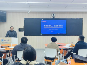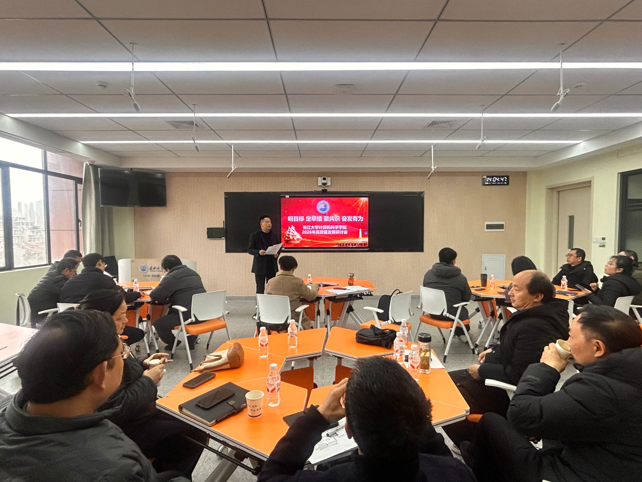 在汇报交流环节,分管领导依次发言,围绕工作成效、存在问题、年度目标及推进举措进行系统阐述。院长助理雷鸣就中外合作办学机构申报与国际交流合作明确推进路径;党委副书记艾林聚焦学生考研录取率、四级通过率等核心指标,提出学生工作提质增效的具体措施;副院长刘波涛以“析现状、破困境、融优势、谋未来”为主线,复盘2025年科研目标完成情况,剖析科研工作亮点与不足,并从团队建设、科研报奖、国基申报等方面明确2026年科研工作重点;副院长陈中举以“一生一赛”为抓手,就赛事承办、工程教育认证推进等本科教学工作作出部署。