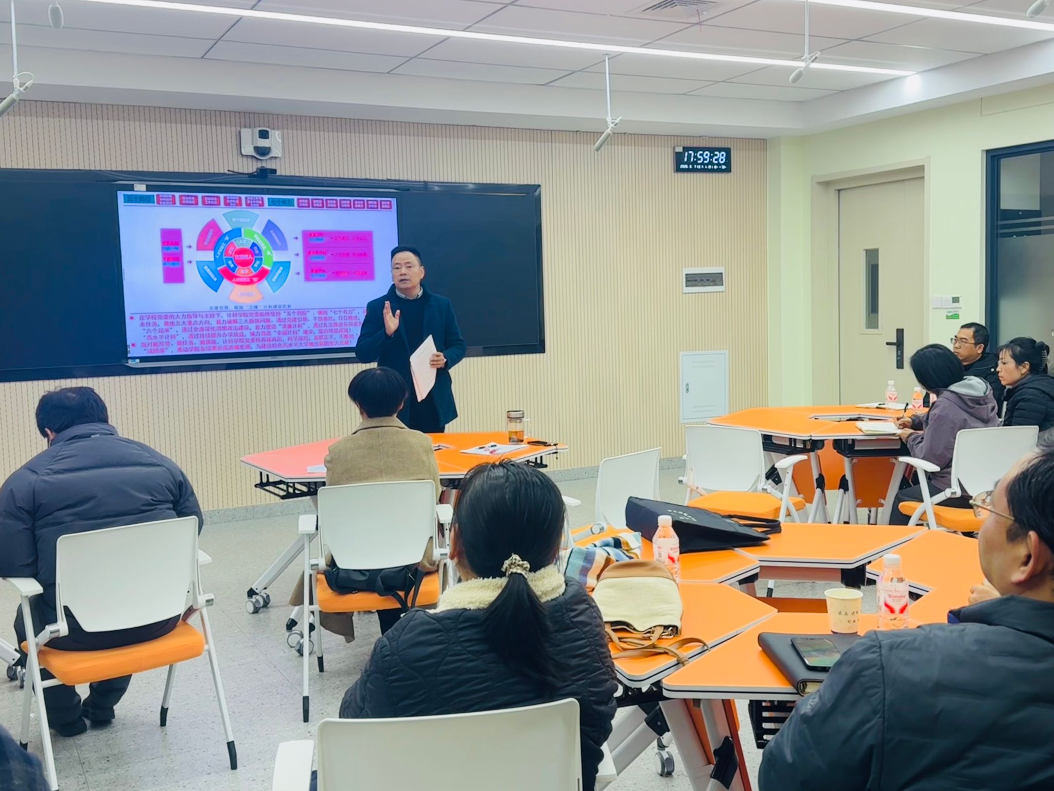 各系部及职能科室负责人立足岗位职责,围绕发展重点依次发言。计算机科学系聚焦专业认证、AI赋能教学、学科竞赛与科研创新;网络工程专业紧盯工程教育认证关键环节;软件工程系细化年度任务,强化责任落实;智能科学与技术系围绕学科建设与人才培养明确攻坚方向;基础教学部聚焦课程改革,推动人工智能与教学深度融合;实验中心强化安全管理与条件保障;学生工作办公室细化育人指标,强化过程管理;博彩体育